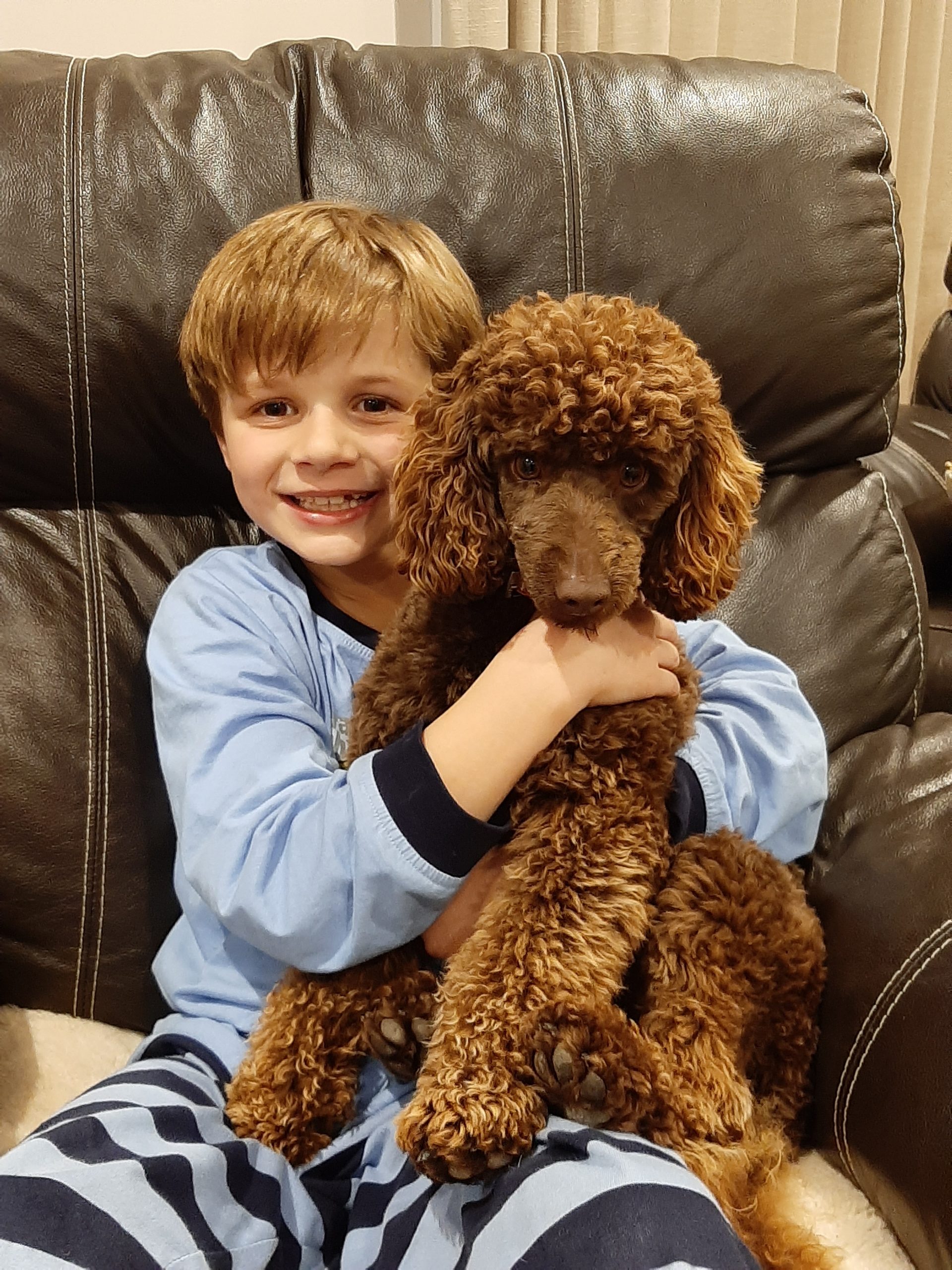 Jake is our handsome chocolate poodle weighing 7.5kg. He has a quiet personality and loves nothing more than snuggling up on the lounges for cuddles and playing with his squeeky tennis ball inside. He has produced some beautiful pups that have become adored family pets.