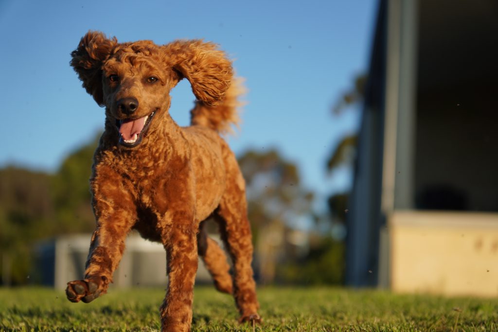 Bear is our handsome red male poodle, weighing approximately 8.5kg. He has a beautiful coat and loves playing with everyone!
